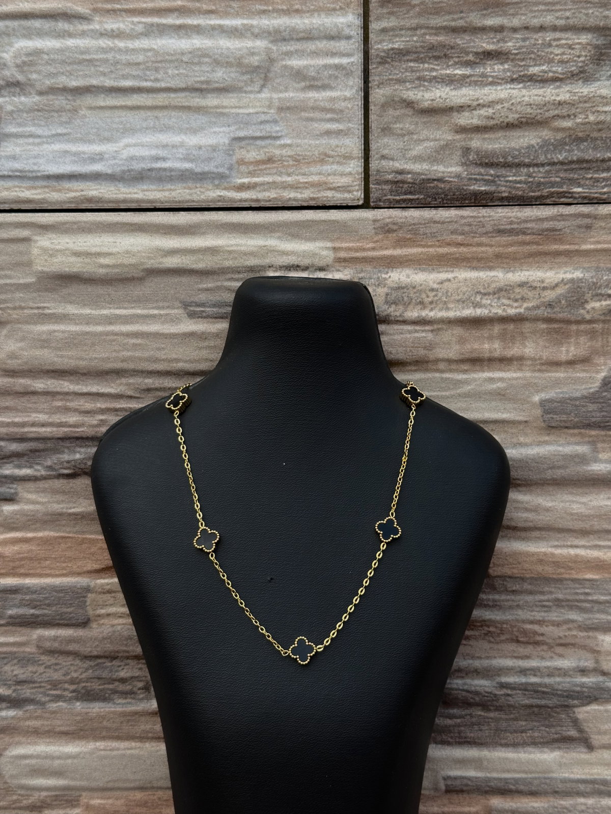 Elegí brillar con nuestro Collar Trébol Luxe Gold, un diseño delicado y elegante ideal para usar todos los días. Está hecho en acero quirúrgico con baño de oro, e incluye delicados tréboles negros esmaltados que aportan un toque moderno y sofisticado. Perfecto para combinar con cualquier look ✨